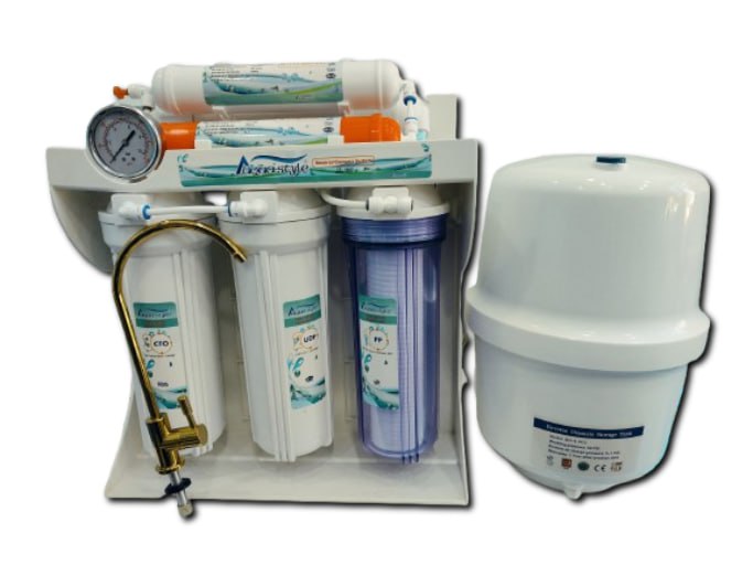 دستگاه تصفیه آب خانگی AQUA STYLE چین ۶ مرحلهای با فیلتر ممبران ۱۰۰ گالن و مینرال