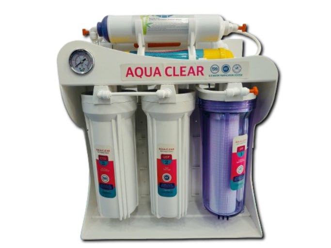 دستگاه تصفیه آب خانگی AQUA CLEAR ایرانی با هفت مرحله فیلتراسیون کامل، آب سالم، خوشطعم و غنی از املاح ضروری را برای خانواده شما فراهم میکند. فیلترهای این دستگاه شامل: