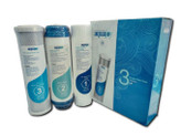 پک فیلتر سه‌ تایی تصفیه آب خانگی آکواجوی (AQUAJOY) الیافی کربن گرانولی و کربن بلاک