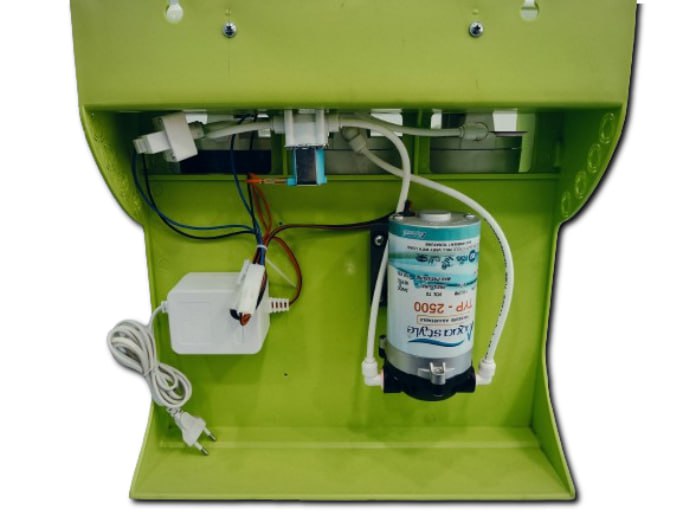این دستگاه دارای مخزن آنتیباکتریال تک لایه با ظرفیت ۴ گالن به همراه شیر مخزن، پک انشعابی با شیر برنجی و سه راهی استیل، شیر برداشت اهرمی سنگین، آچار هوزینگ، ترانس با سیم پیچ مسی، پمپ جتسان تایوان و شلنگ میباشد.