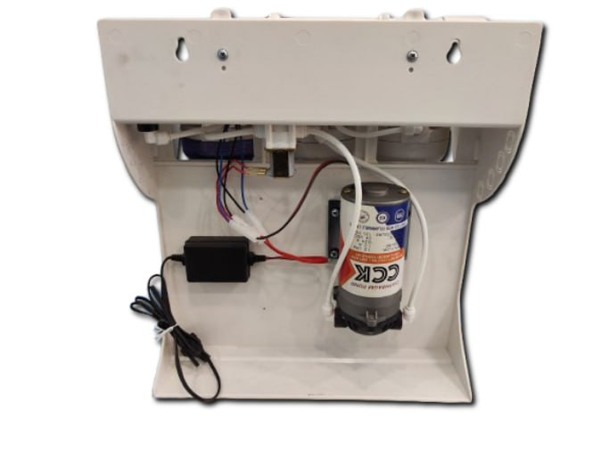 این دستگاه دارای مخزن آنتیباکتریال تک لایه با ظرفیت ۴.۵ گالن به همراه شیر مخزن، پک انشعابی (شیر و سه راهی)، شیر برداشت ستارهای، آچار هوزینگ، ترانس الکترونیکی و شلنگ میباشد.